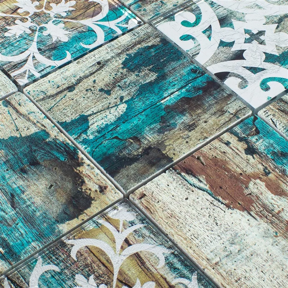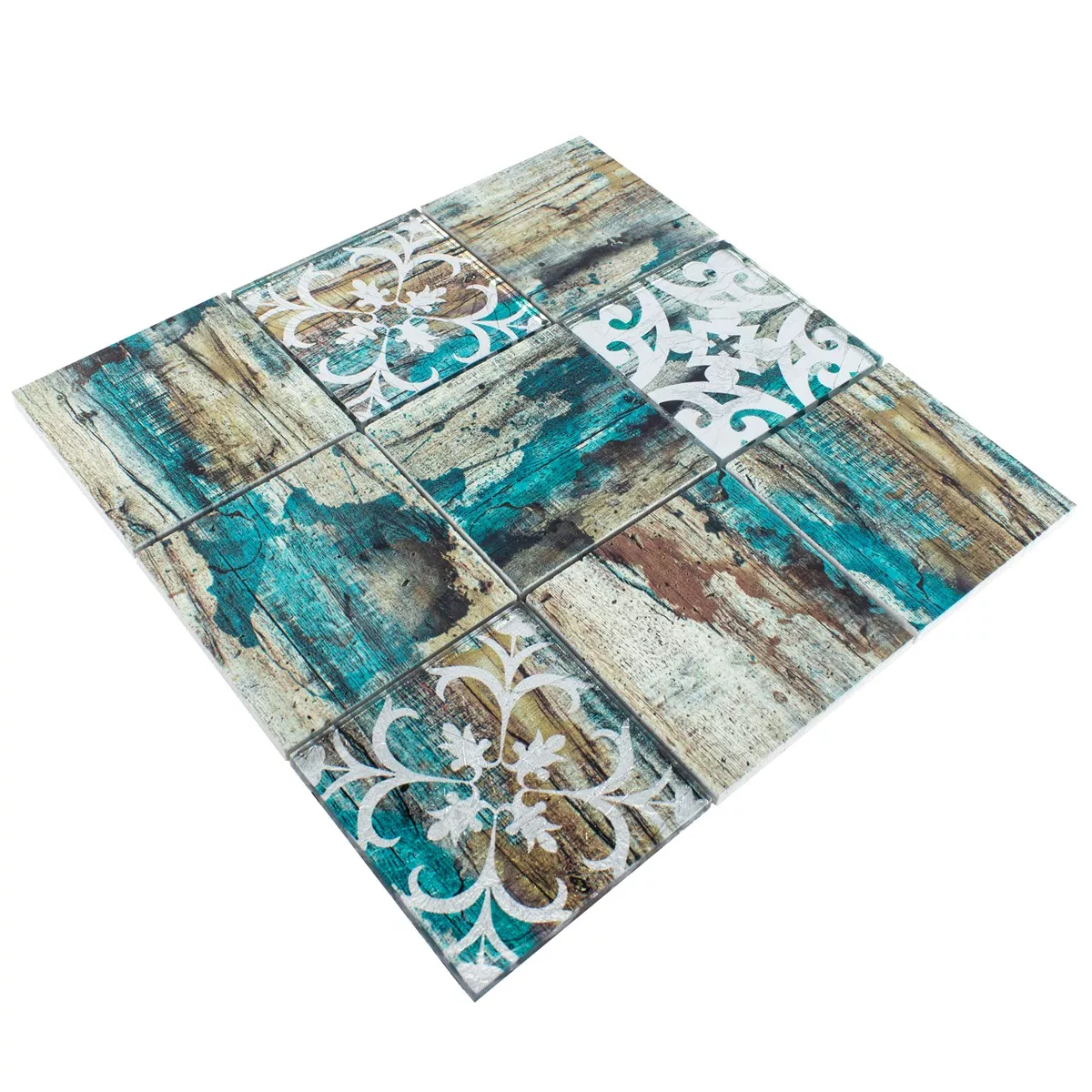 Muestra Mosaico de Cristal Azulejos Aspecto de Madera Howland Beige Verde Q98