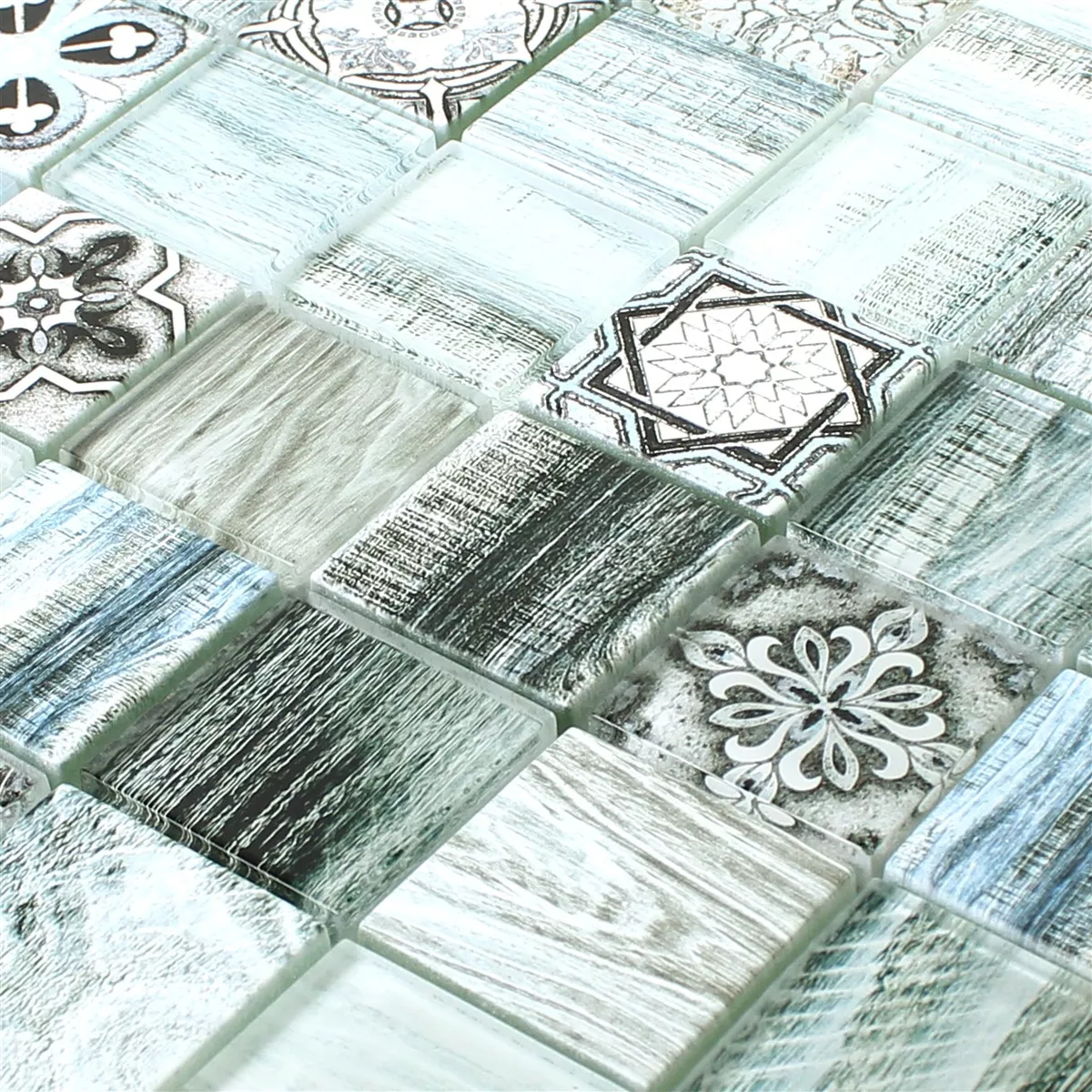 ¡Parece madera, pero en realidad es vidrio! Hablamos del mosaico de vidrio Makarska. Es un azulejo de pared hecho de vidrio, que tiene un hermoso aspecto de madera. El azulejo de mosaico azul claro tiene un patrón diverso, por lo que el ojo siempre ve algo nuevo.