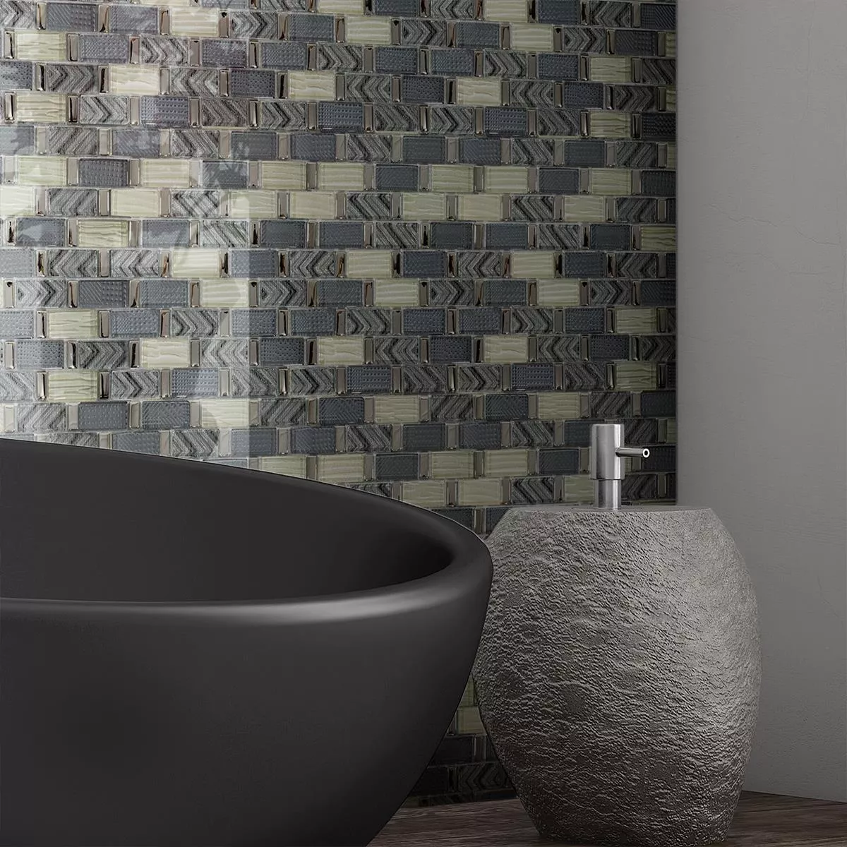 Muestra Mosaico de Cristal Azulejos Buenos Aires Gris Beige Mix