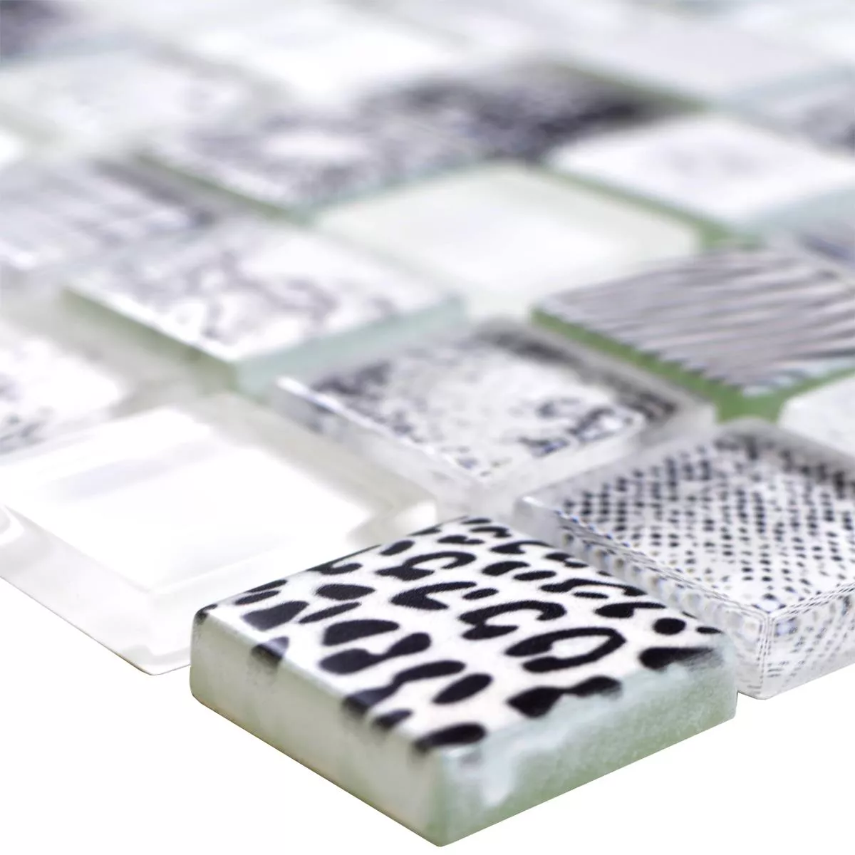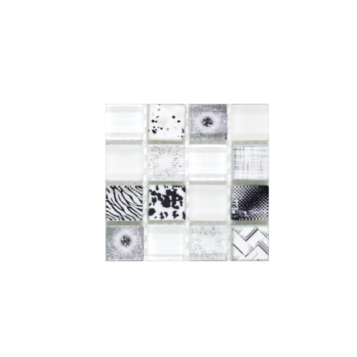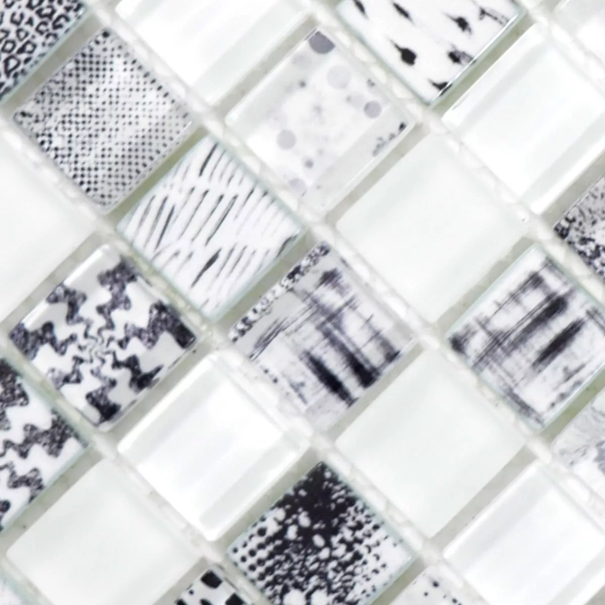 Maravilloso azulejo de mosaico de vidrio Cornelia con un aspecto retro. Con este mosaico se pueden mejorar todas las paredes. Es un tapete de azulejos en super blanco, un azulejo de pared de vidrio con un patrón de mosaico particularmente hermoso.