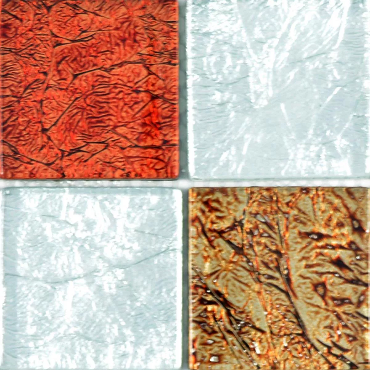 Los mosaicos de vidrio son populares y se pueden comprar en una variedad de tamaños y patrones de piedra. Los mosaicos Curlew son de interés para los compradores que buscan tapetes de mosaico de calidad y quieren elegir entre diferentes tamaños de piedra. Los azulejos están disponibles en diferentes colores. En la versión de color rojo beige plata. El mosaico está hecho de mosaico de vidrio que tiene una apariencia metálica. Debido al brillo metálico, la superficie se ve muy elegante.