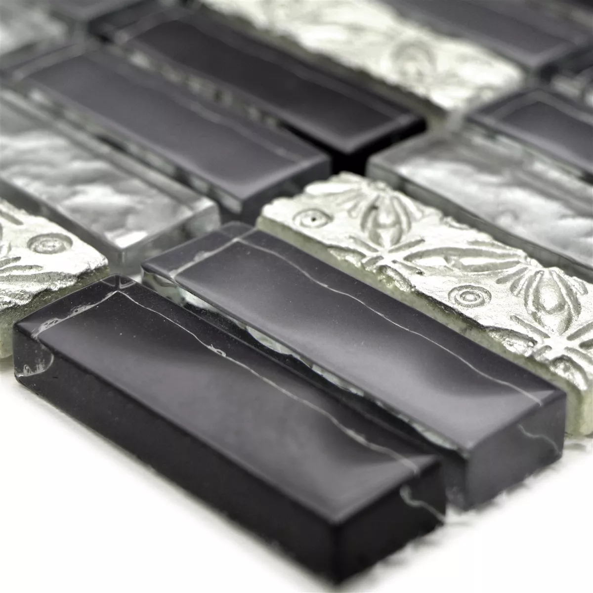 Muestra Mosaico De Cristal Azulejos De Piedra Natura Conchita Negro Plateado