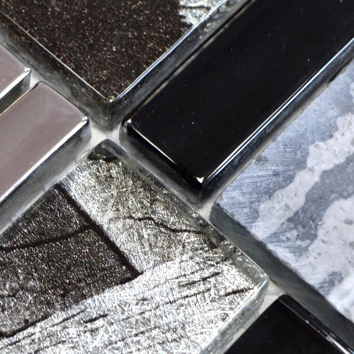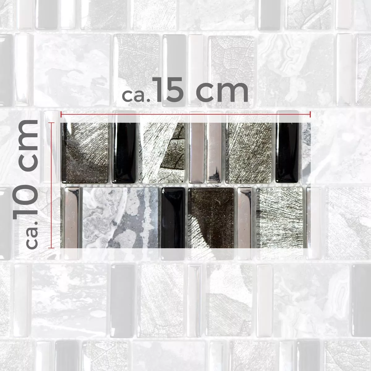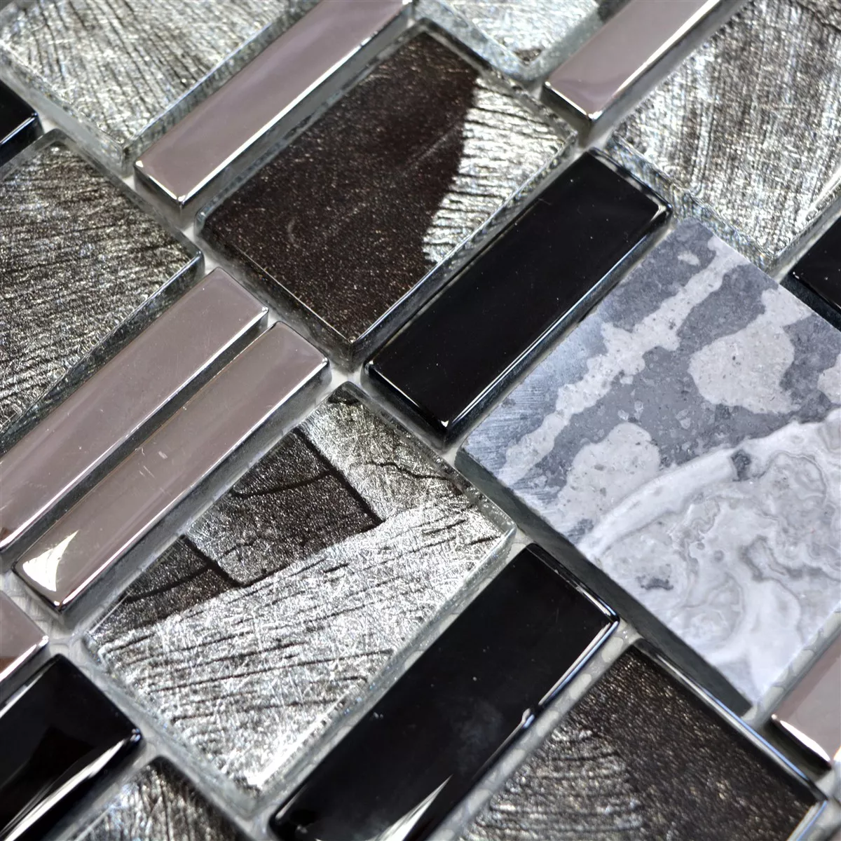 Los mosaicos de vidrio de piedra natural Hummel están disponibles en las combinaciones de color marrón beige y negro gris. La combinación de mosaico de vidrio y piedra natural une elementos de diseño clásicos y modernos. Una piedra natural de mosaico de vidrio es particularmente popular para el diseño en cocinas y baños. Para lograr un efecto similar, las baldosas de piedra natural de mosaico de vidrio Hummel se pueden combinar con baldosas con un elegante aspecto de madera. Con esta combinación se consigue un efecto sutil. A través de la combinación de buen gusto de diferentes colores, un diseño interior estrictamente purista se puede relajar con una piedra natural de mosaico de vidrio.