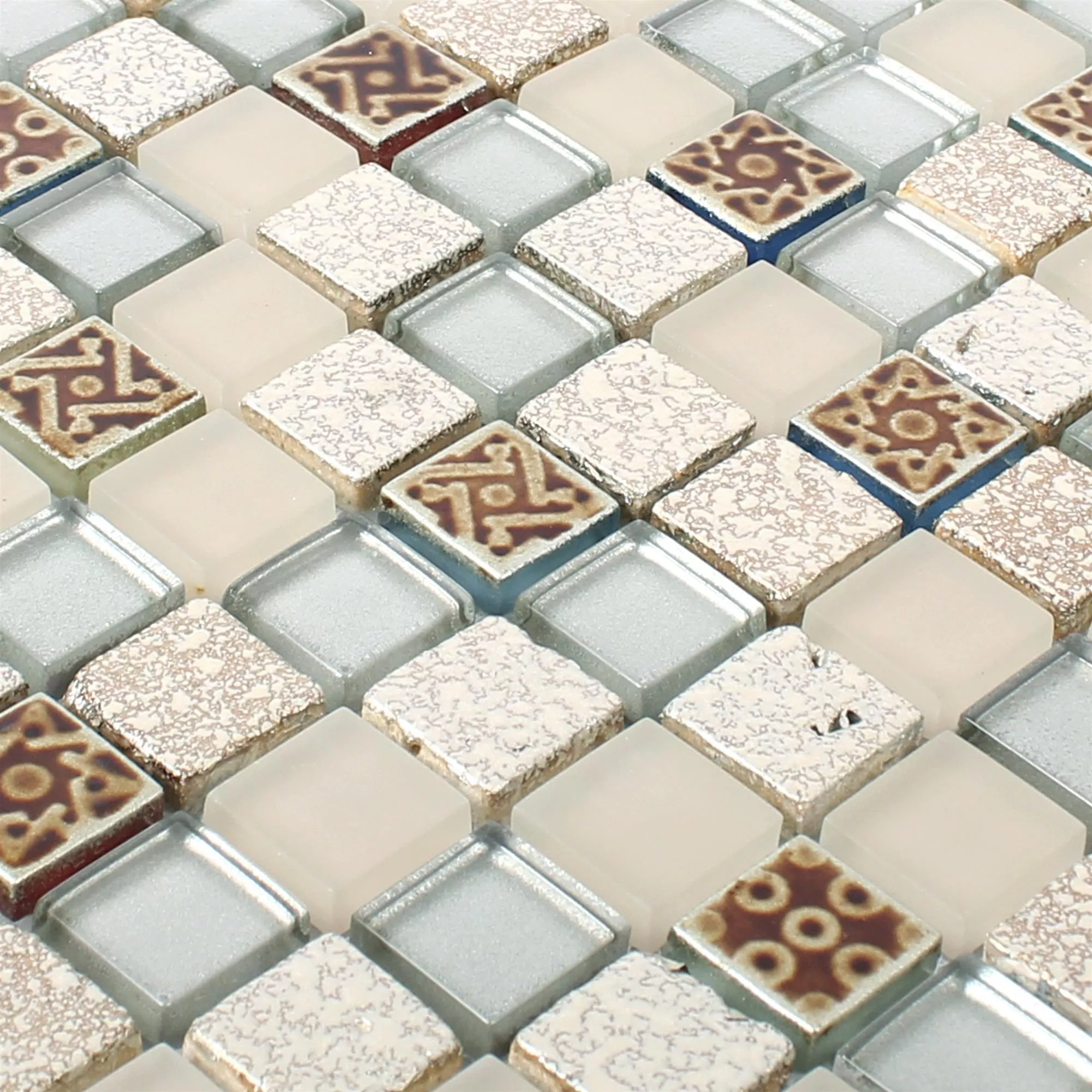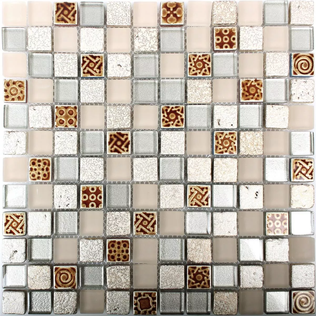 Muestra Mosaico De Cristal Azulejos De Piedra Natura Kobold Beige Plateado