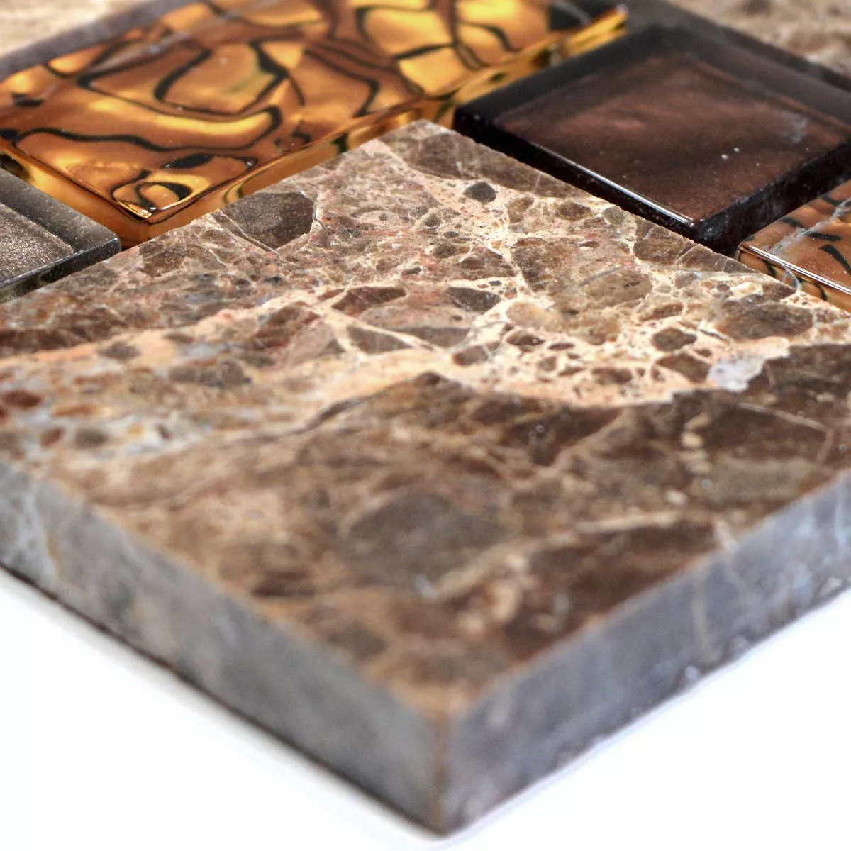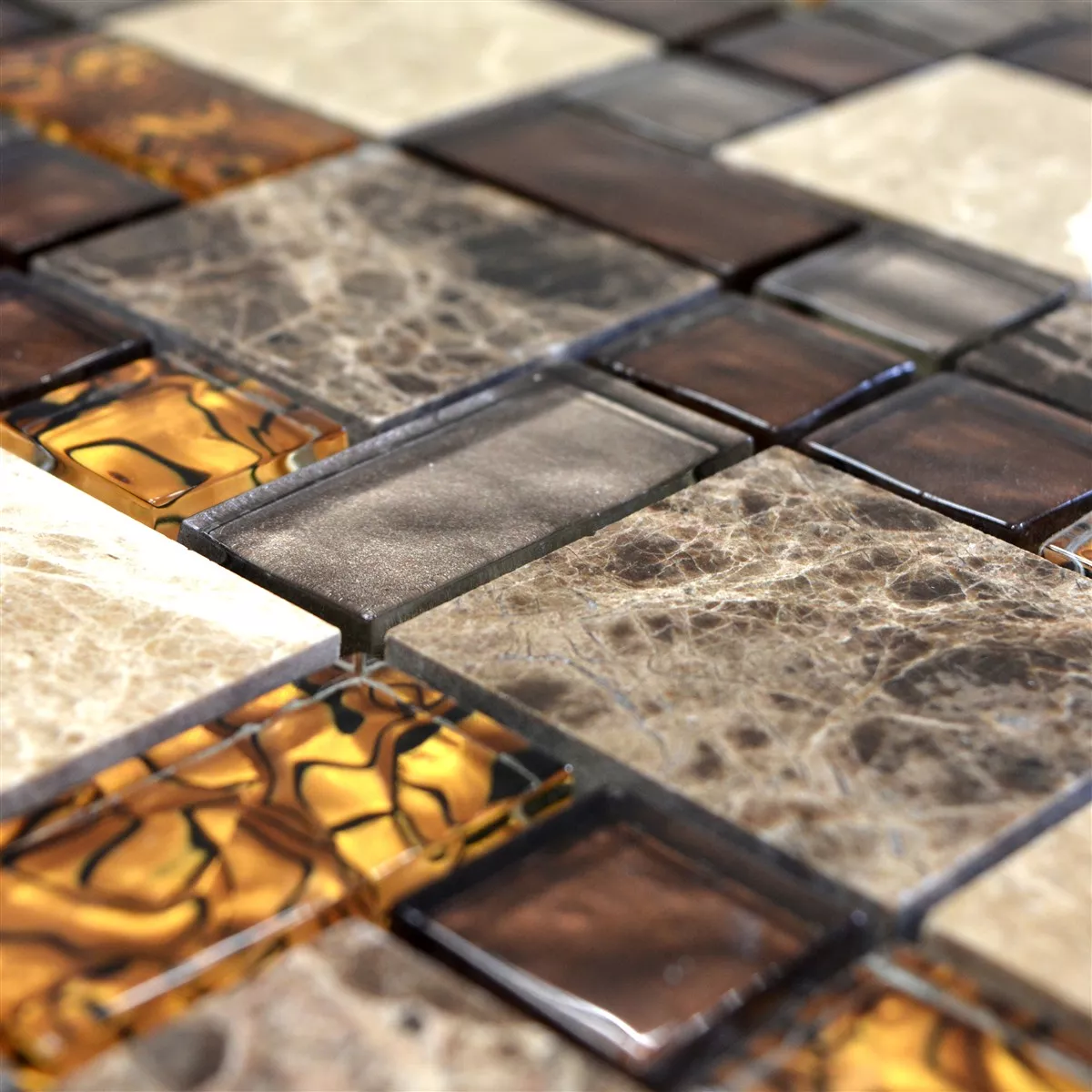 Los azulejos son revestimientos con un diseño inusual y elegante. Los mosaicos también se pueden combinar perfectamente con muchas baldosas. En términos de color, los azulejos con una mezcla de marrón y beige se ven muy elegantes y de alta calidad. Los azulejos de la serie Azulejos de Mosaico de Mármol de Vidrio Lambada Marrón Beige tienen una superficie pulida brillante, lo que subraya su expresión especial y también es muy fácil de cuidar. Los mosaicos se entregan en la versión como tapete. Por supuesto, se pueden tener en cuenta las dimensiones individuales.
