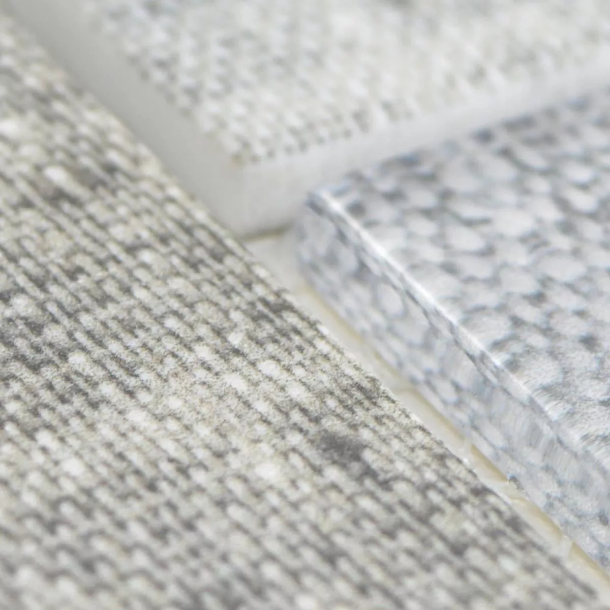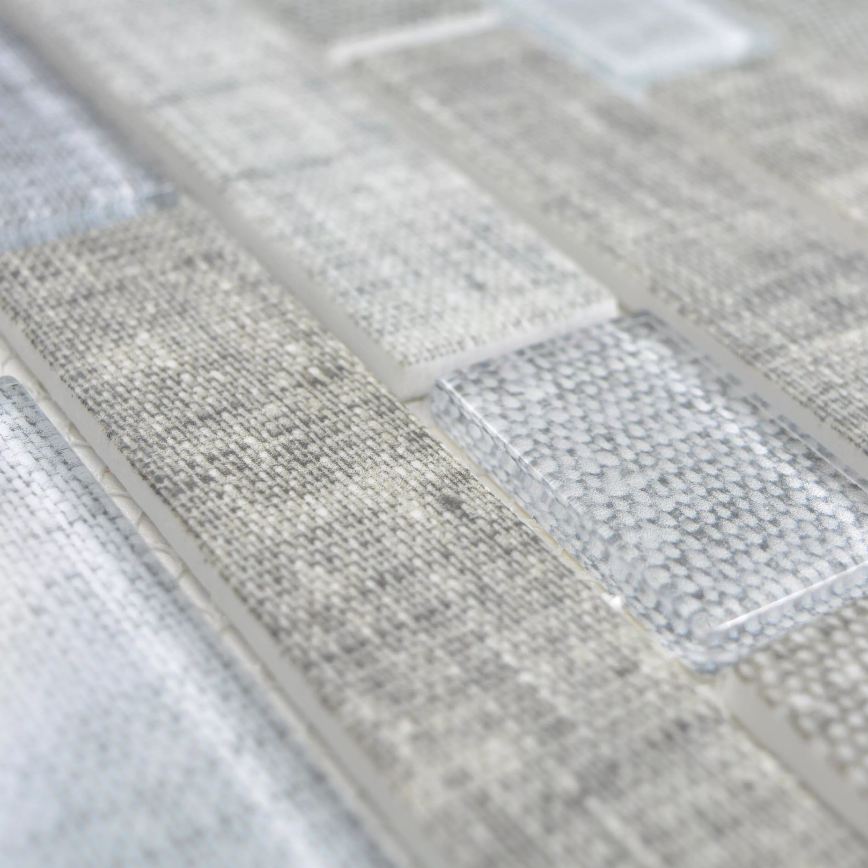 Muestra Mosaico De Cristal Azulejos Lyonel Aspecto Textil Brick Gris