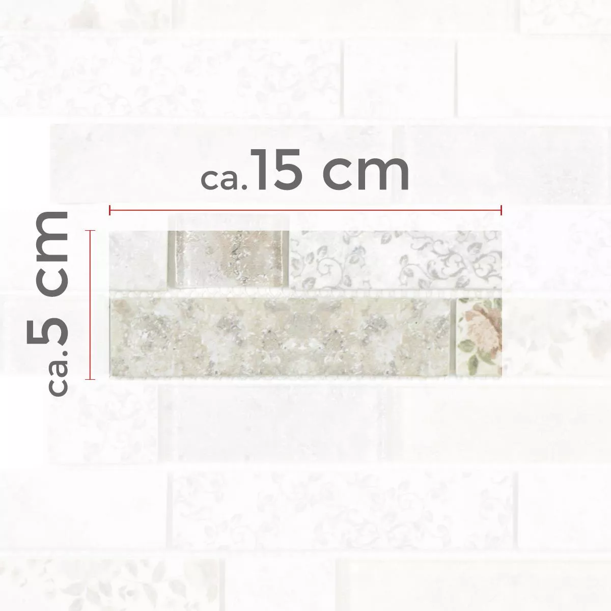 Cada baldosa y cada mosaico tienen diferentes requisitos de recorte, colocación y procesamiento debido a las características individuales del material y las condiciones de uso. Solicite a un experto local la colocación correcta y segura de sus mosaicos o baldosas. No somos responsables por el uso no profesional y la mano de obra defectuosa de los materiales de construcción.