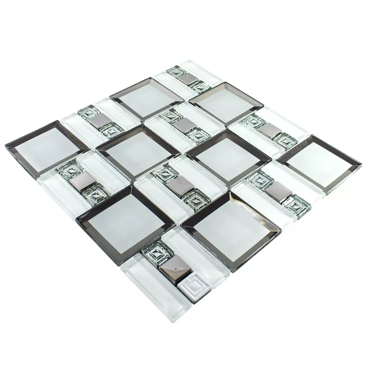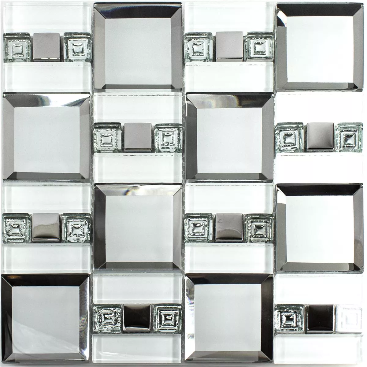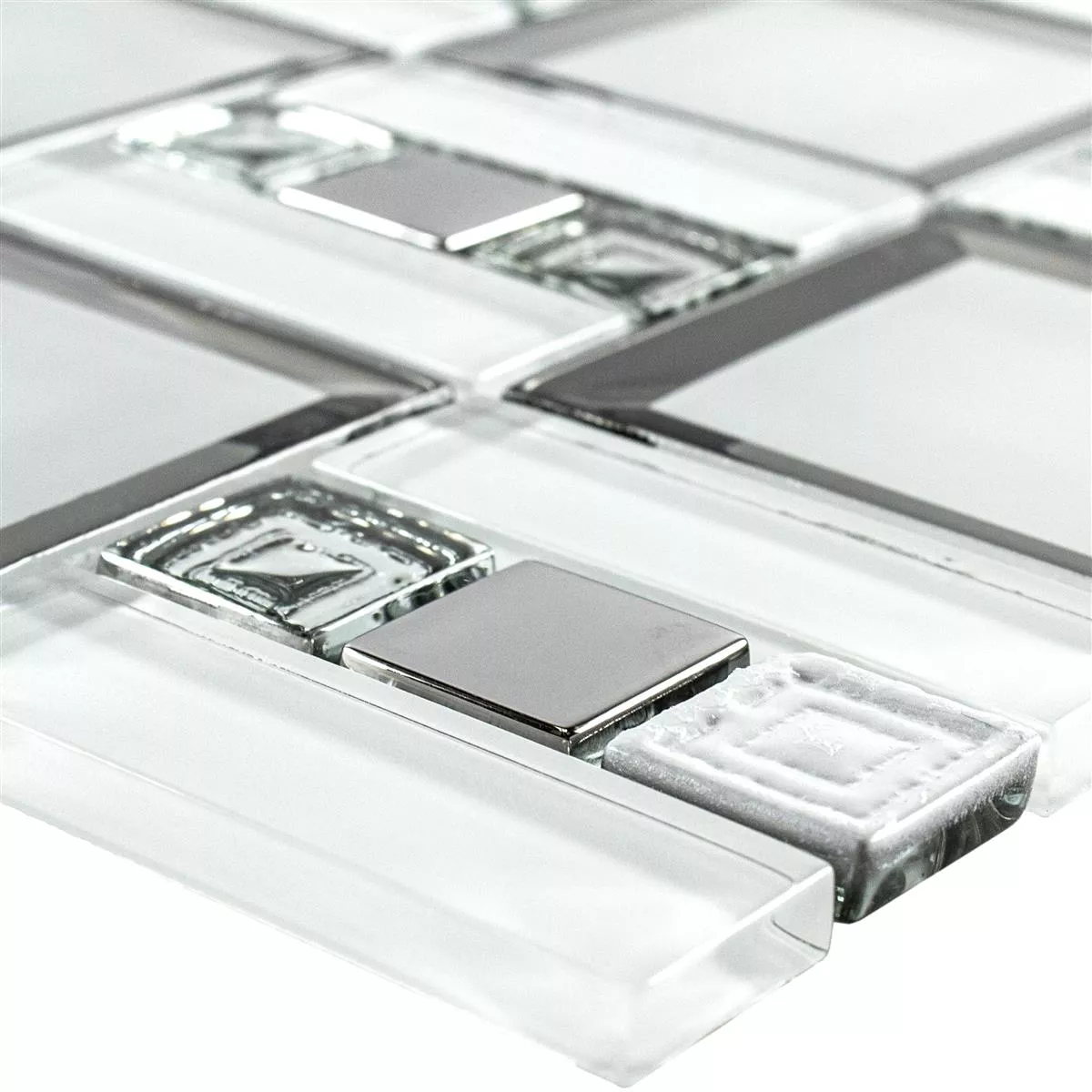Muestra Mosaico de Cristal Azulejos Magical Blanco Plateado