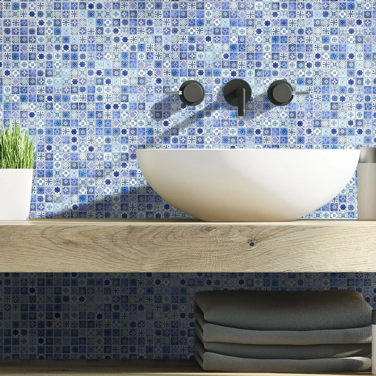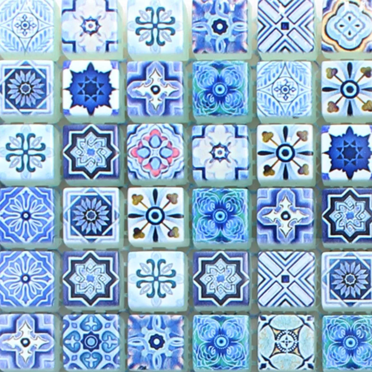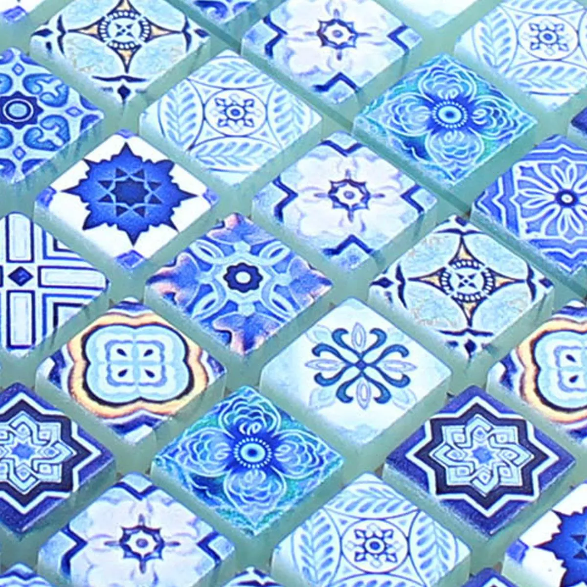 Mosaico de vidrio Marrakech combina innovación y belleza. El azul intenso recorre el hermoso azulejo. Los patrones mediterráneos dan a los espacios de vida y de negocios un toque oriental.
