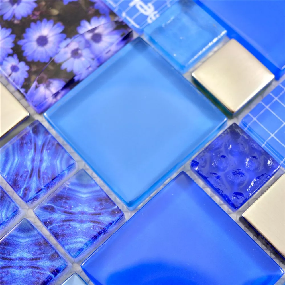 Muestra Mosaico De Cristal Azulejos Nemesis Azul Plateado