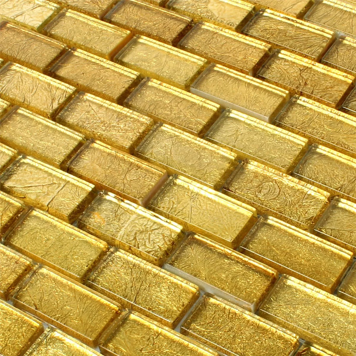 Muestra Mosaico de Cristal Azulejos Saturn Oro Rectángulo