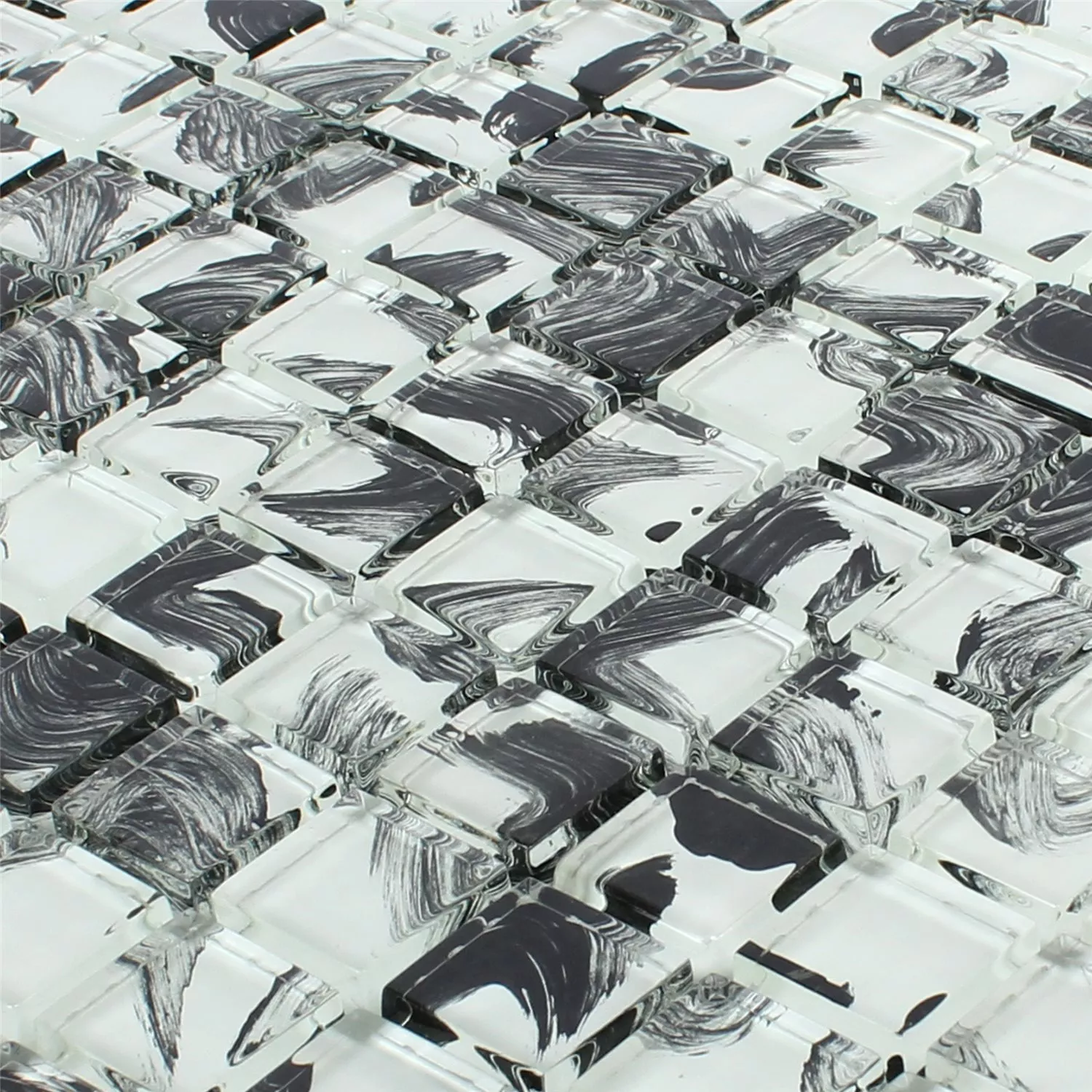 Los mosaicos de vidrio Ternopil Black Marbled tienen un aspecto moderno retro/vintage y estos mosaicos le dan a una habitación un toque especial. La superficie de cristal brillante, en los colores blanco y negro, recuerda nostálgicamente a tiempos pasados. Los mosaicos son definitivamente un punto de atracción y una atracción en la casa. Los mosaicos van muy bien en el salón y en el comedor. Sin embargo, dado que también se pueden usar en áreas húmedas, también son un maravilloso recurso estilístico en la cocina o el baño que no deja de tener efecto.