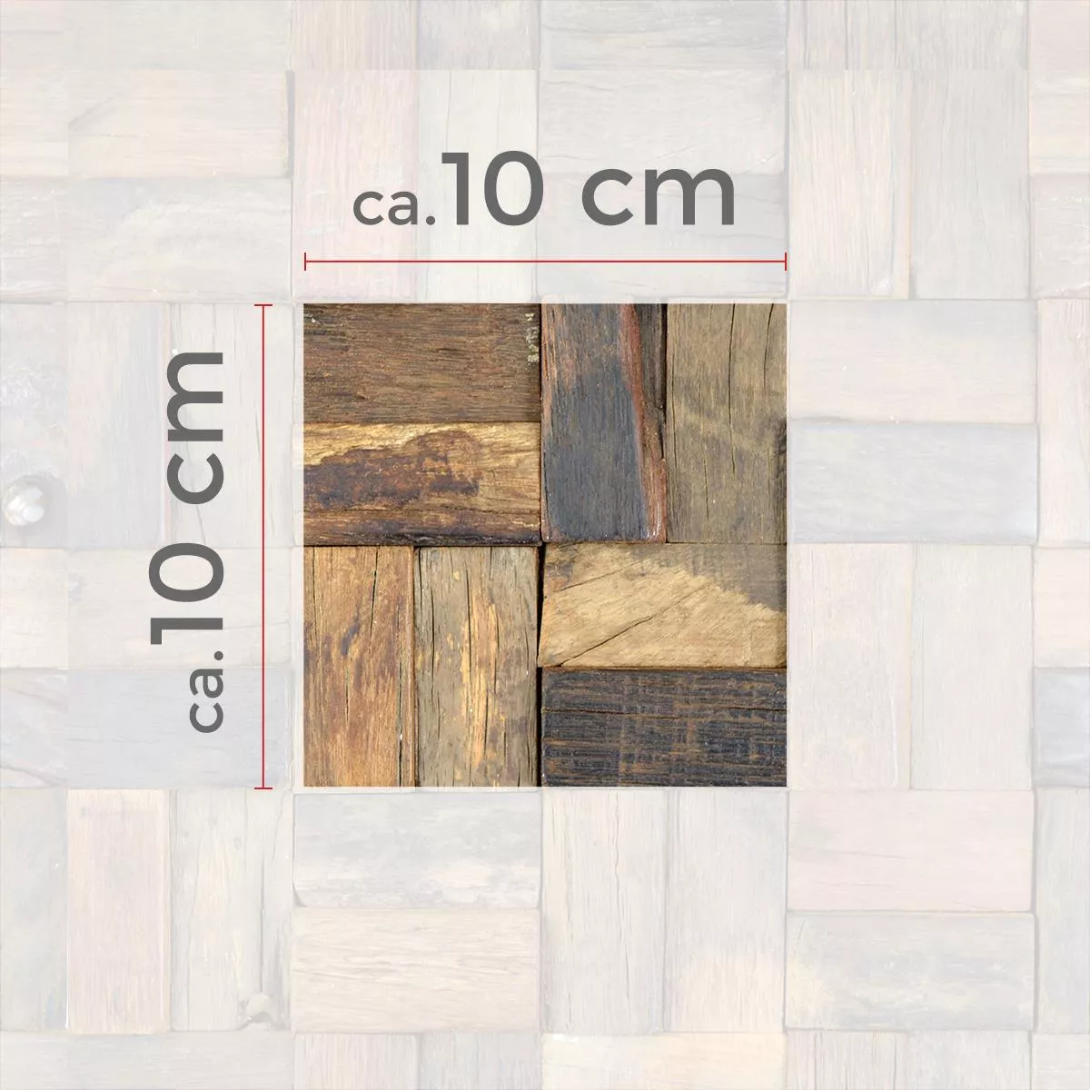 Símbolo de la tendencia hacia la sostenibilidad, el mosaico de madera "Brendon 3D brown" está hecho completamente de madera que ha sido aserrada en diferentes formas y dimensiones.