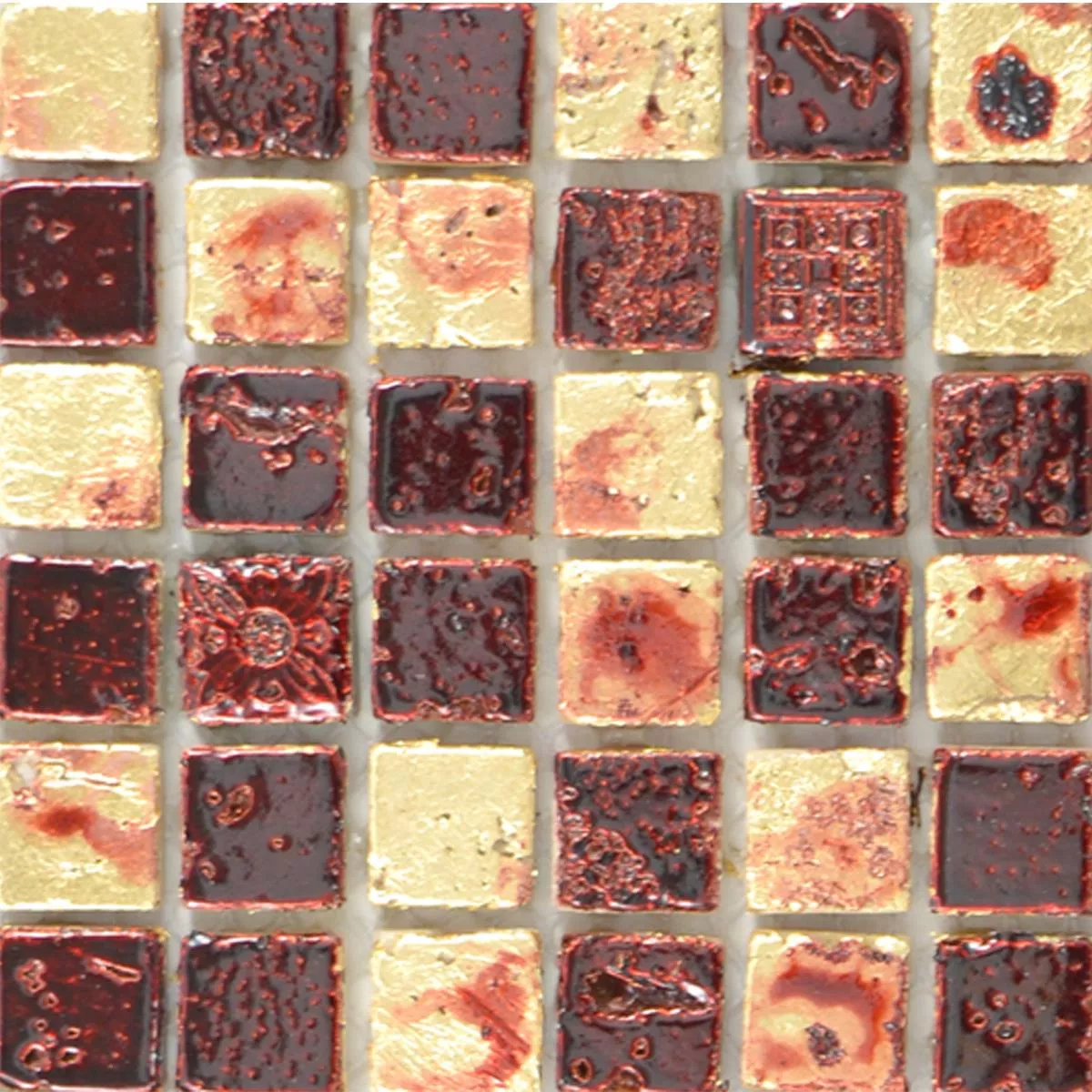Muestra Piedra Natural Resina Azulejos De Mosaico Lucky Oro Rojo