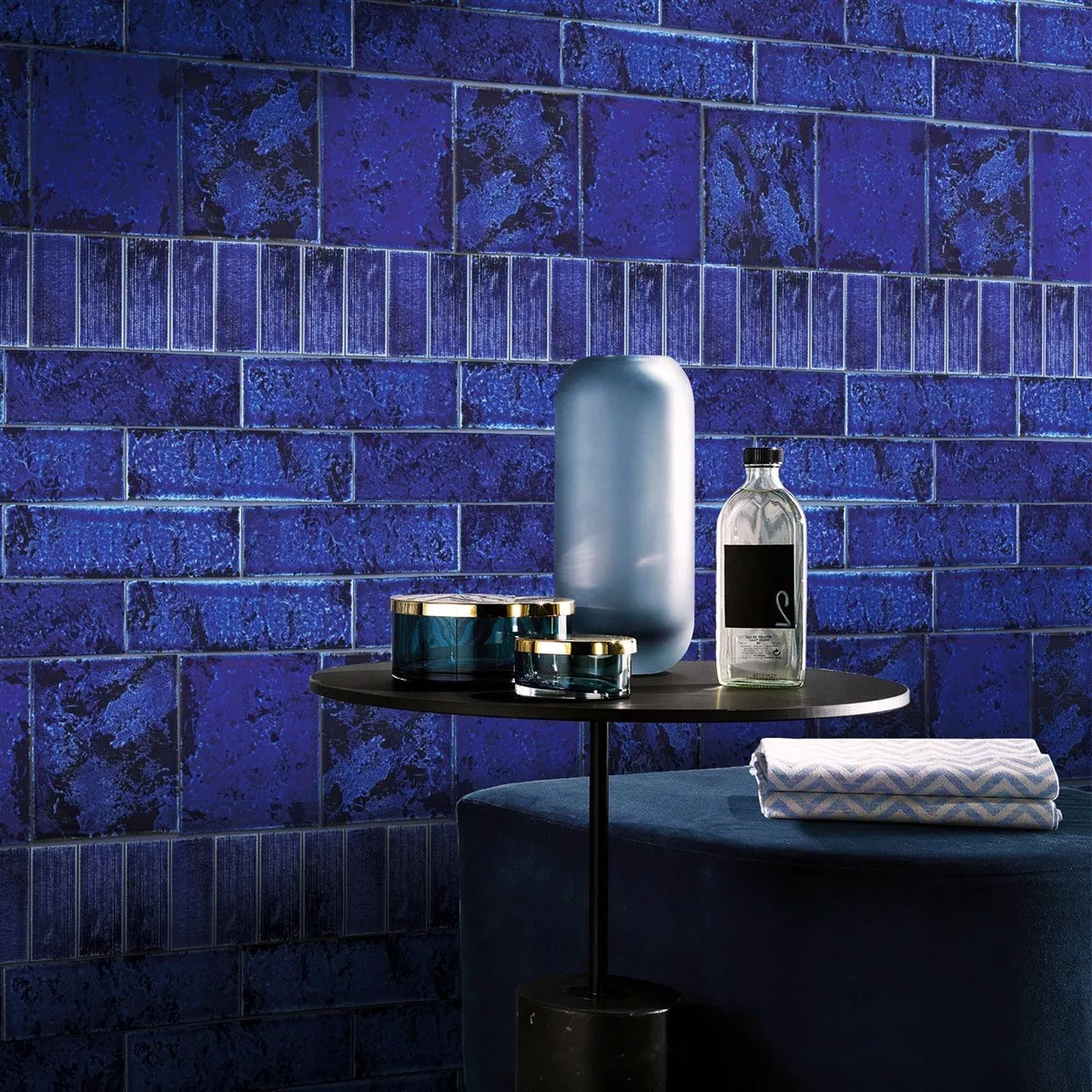 Muestra Revestimiento Vanroy Corrugado 6x24cm Azul Oscuro