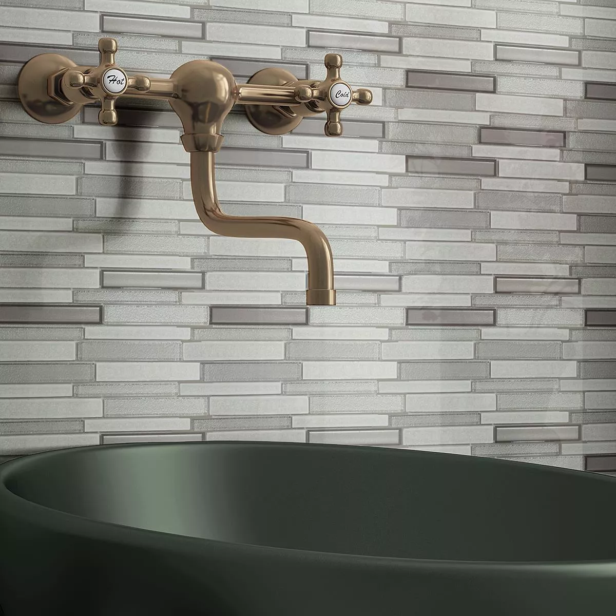 Muestra Vidrio Piedra Natural Mosaico Cristal Springs Brick Blanco