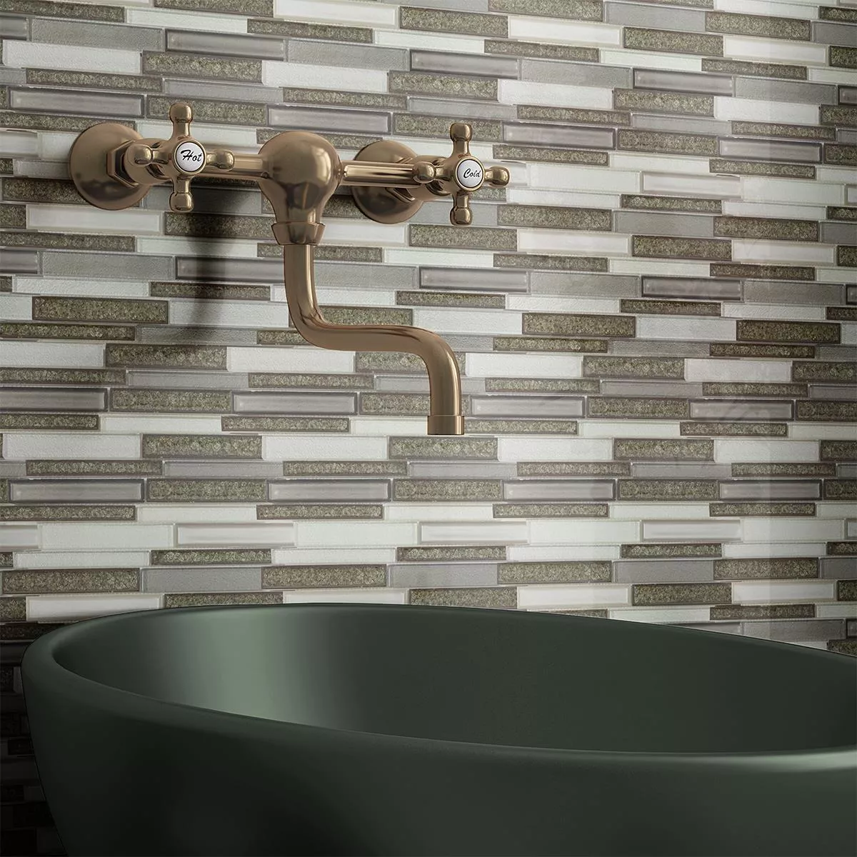 Muestra Vidrio Piedra Natural Mosaico Cristal Springs Brick Gris