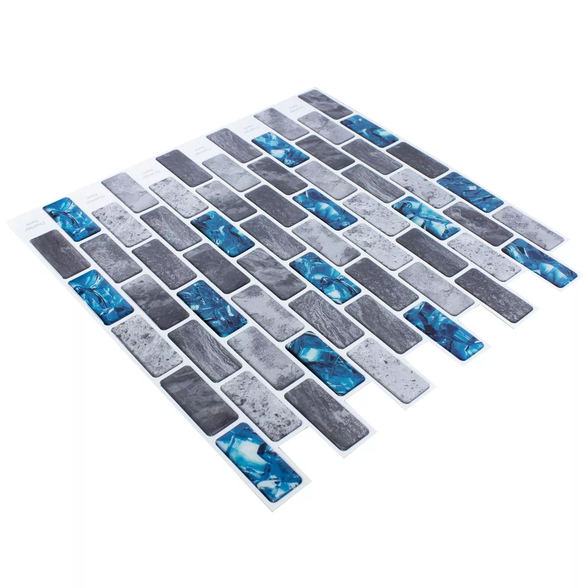 Muestra Vinilo Azulejos De Mosaico Belleza Azul Gris Autoadhesivo