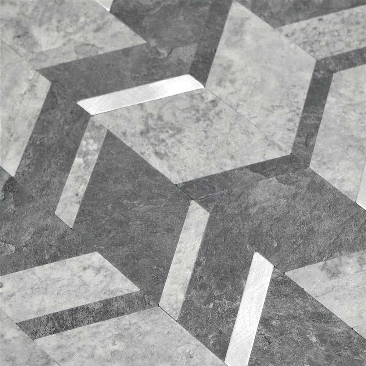 Muestra Vinilo Azulejos De Mosaico Meridian Aspecto De Piedra Negro Plateado