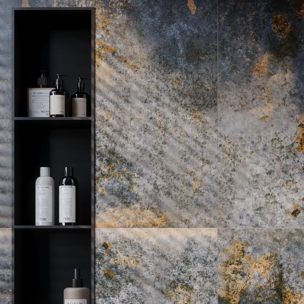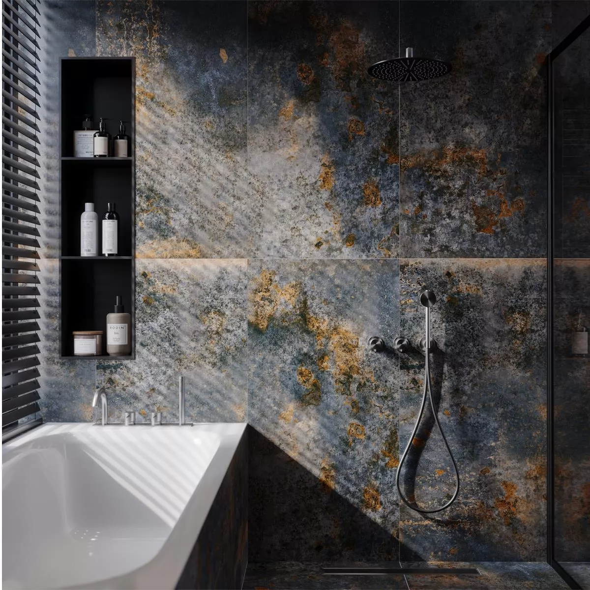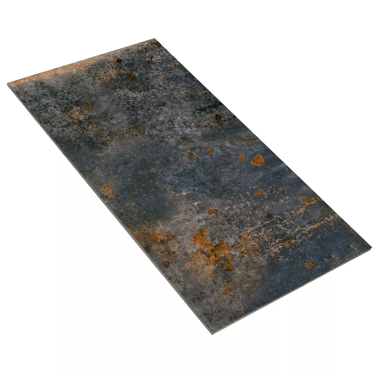 Pavimento Azulejos De Gres Oregon Aspecto Metálico Azul 60x120cm