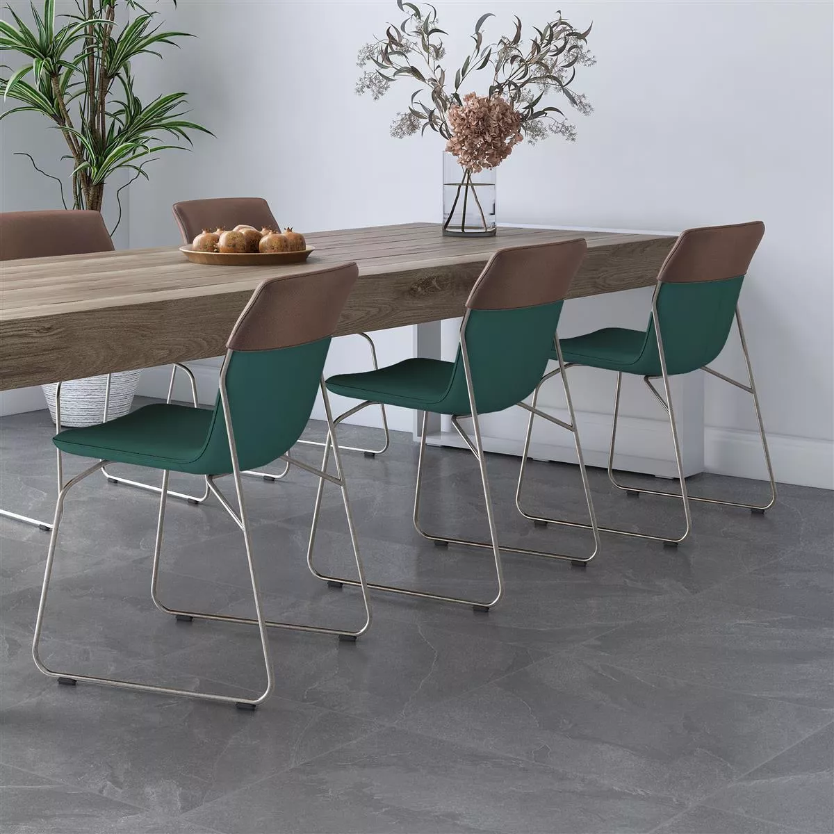 Aporte un toque moderno y elegante a sus habitaciones con las baldosas Memphis en antracita intenso. Estos exquisitos azulejos de porcelana combinan el atractivo aspecto de la piedra y la pizarra con una excelente funcionalidad, lo que los hace ideales para una variedad de aplicaciones.