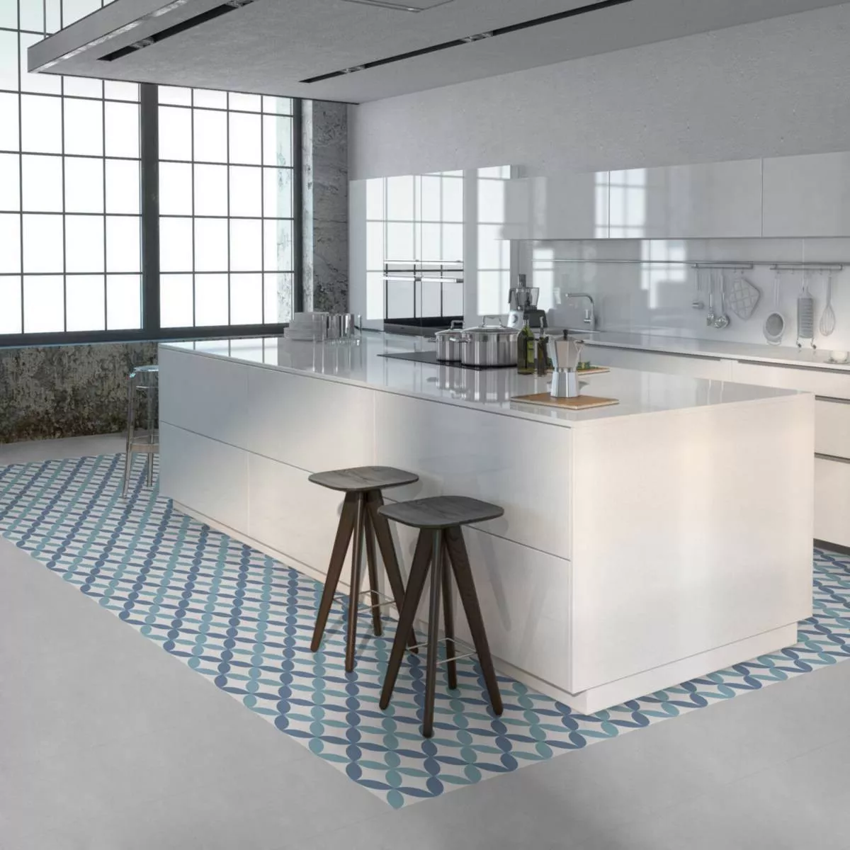 Pavimentos Aspecto De Cemento Atlantica DaVinci Azul Blanco