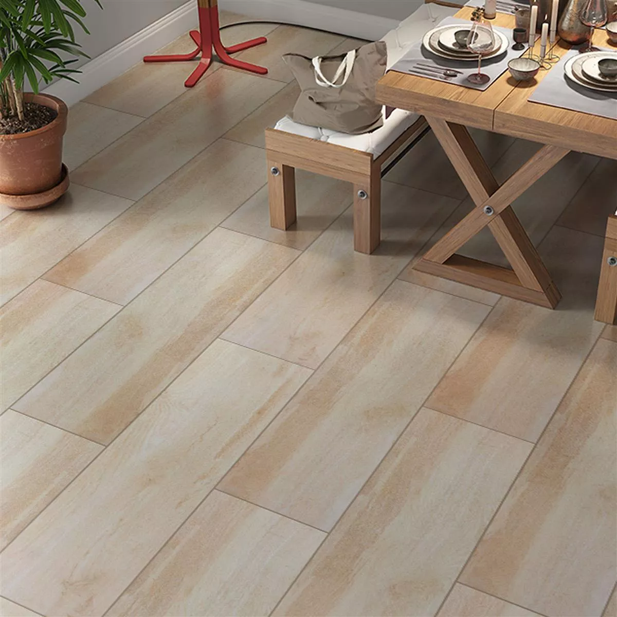 Con su cálido tono beige y su aspecto de madera, estos azulejos crean una atmósfera acogedora y se adaptan perfectamente a diferentes estilos de interior. La combinación de diseño estético y características prácticas hace que las baldosas Caledonia sean una opción versátil y elegante para su diseño interior.