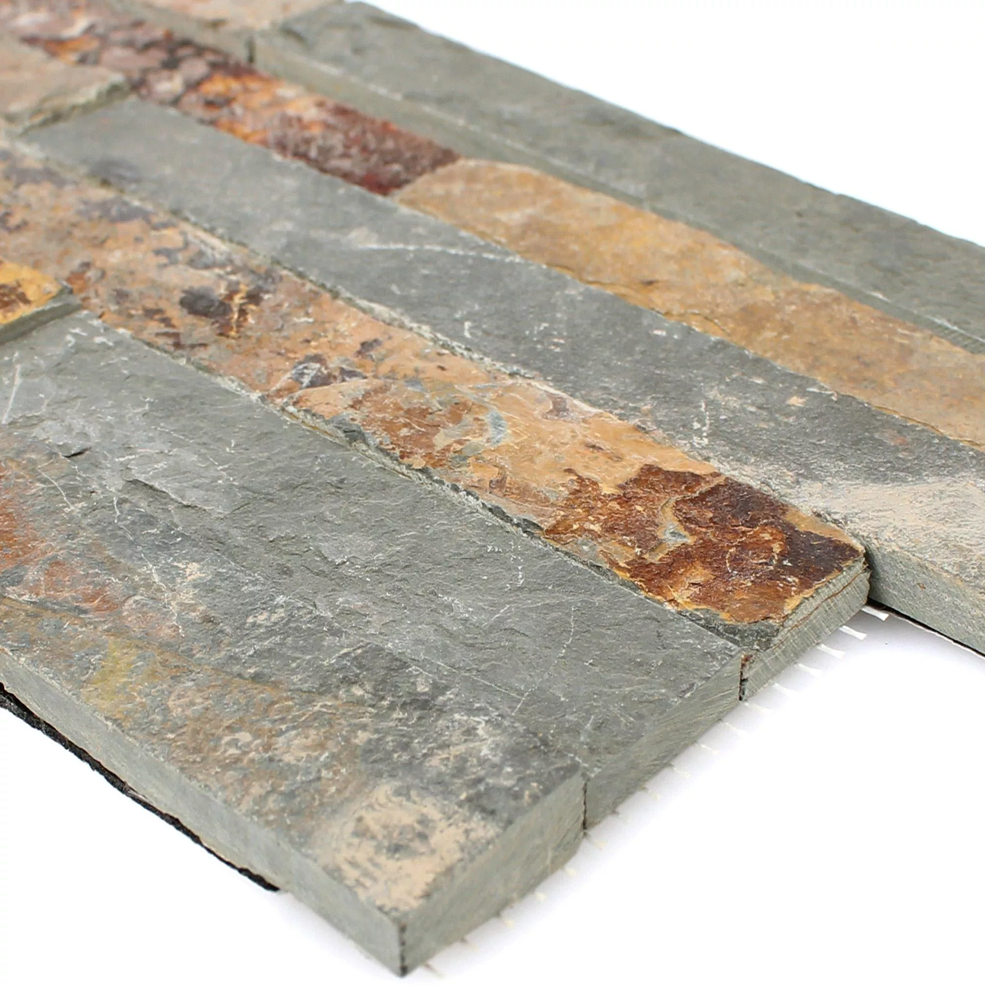 Los azulejos de pared "Belling" se presentan en un elegante juego de colores en dorado, negro y marrón y ofrecen una solución elegante para el diseño de su pared. Estos revestimientos están fabricados con pizarra de alta calidad y están disponibles tanto en acabado mate como texturizado. Las propiedades autoadhesivas facilitan mucho la instalación y eliminan la necesidad de complejos trabajos de pegado.