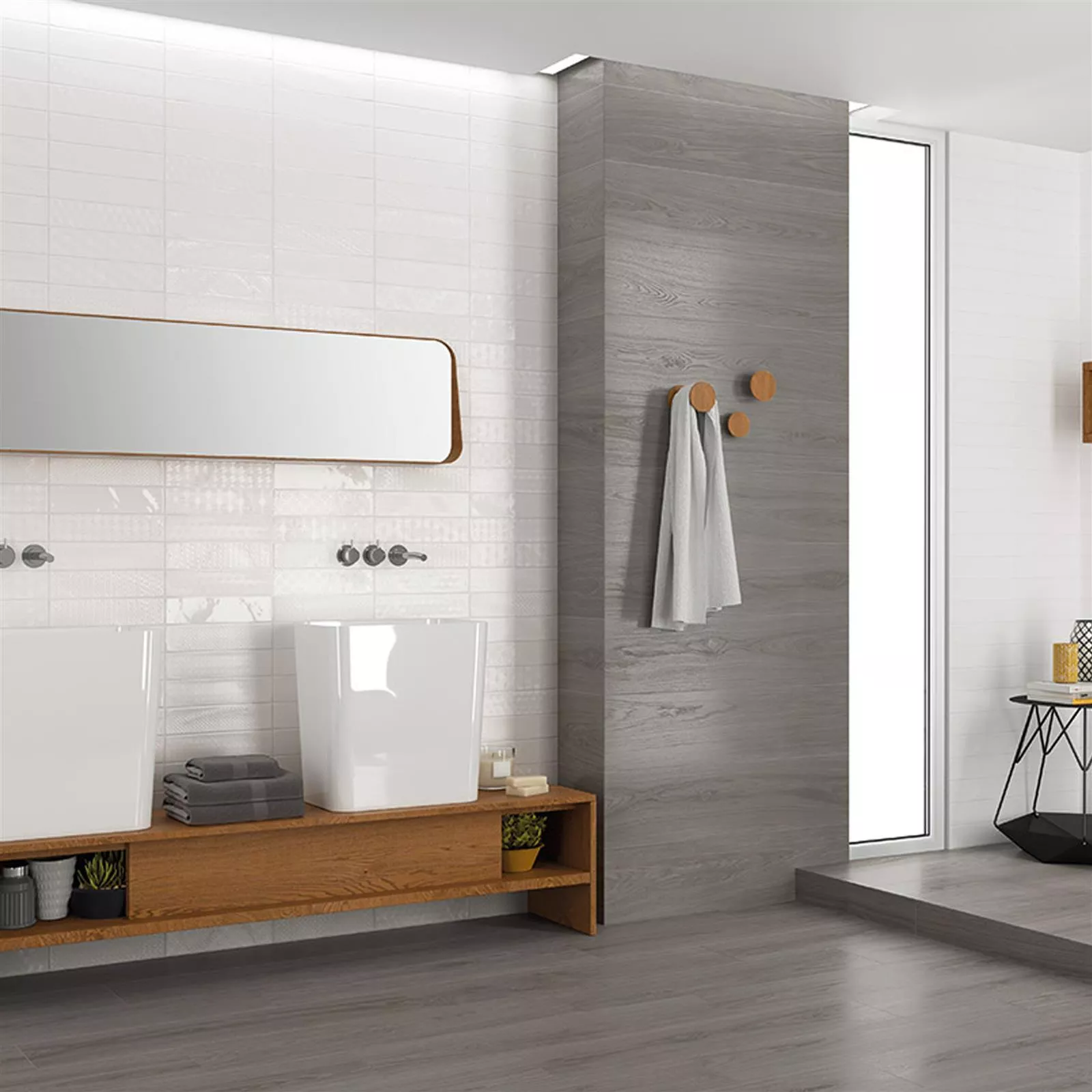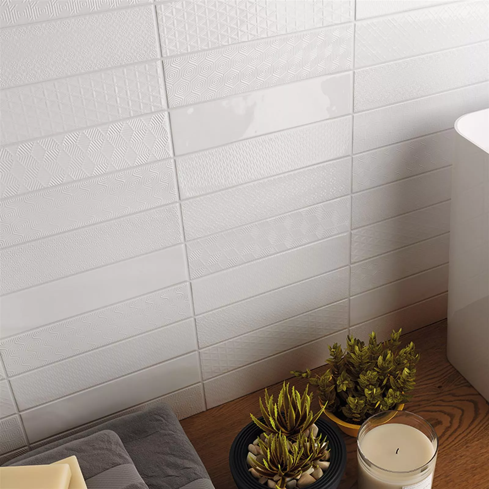 El azulejo de pared Conway encanta su baño y tiene un hermoso patrón de superficie ondulada. Este azulejo de pared en color blanco nieve, la superficie de los azulejos se mantiene brillante y el material de este azulejo de pared está hecho de loza duradera. El material es muy robusto y el patrón de la superficie hace que todos los baños brillen.
