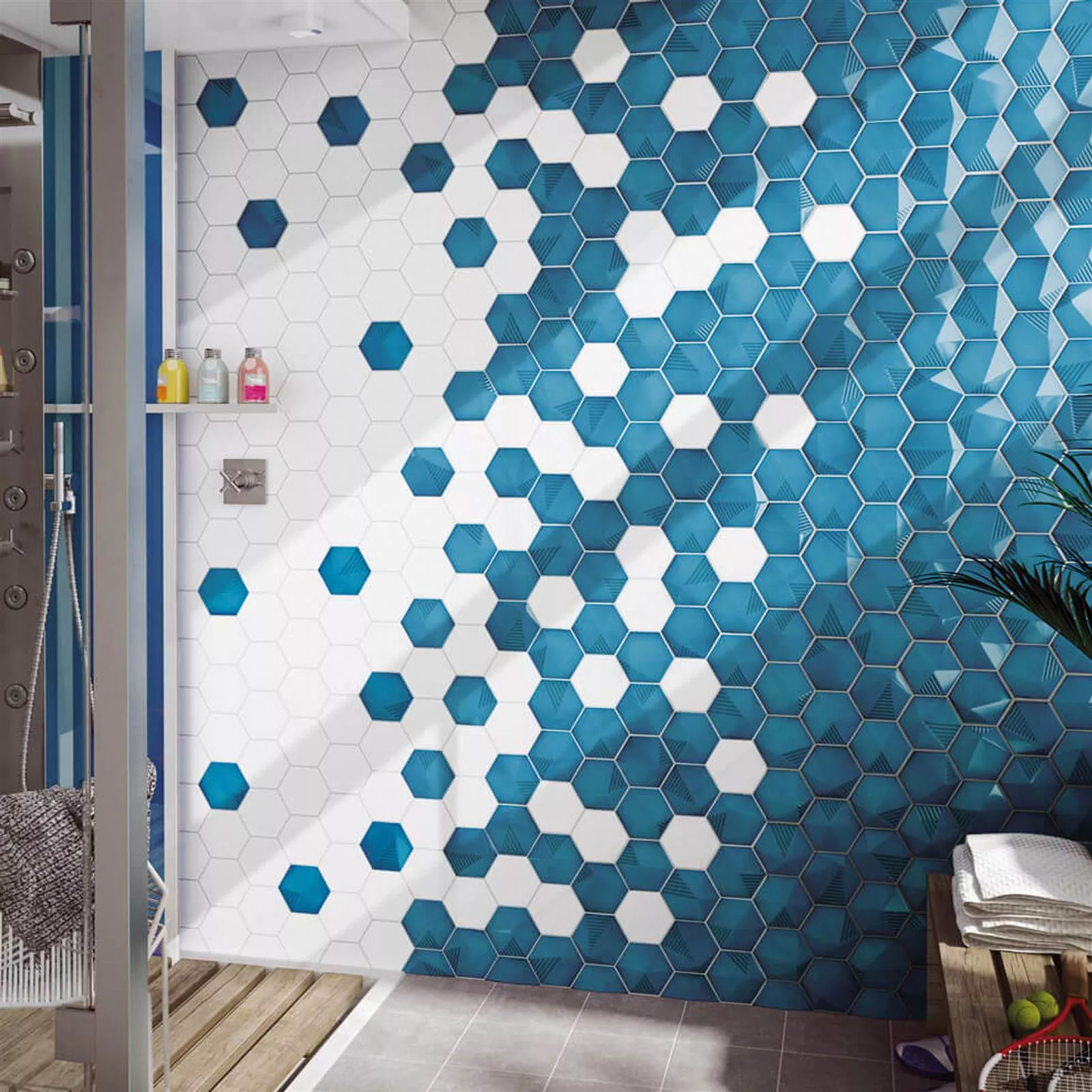 Revestimientos Rockford 3D Hexagonales 12,4x10,7cm Azul