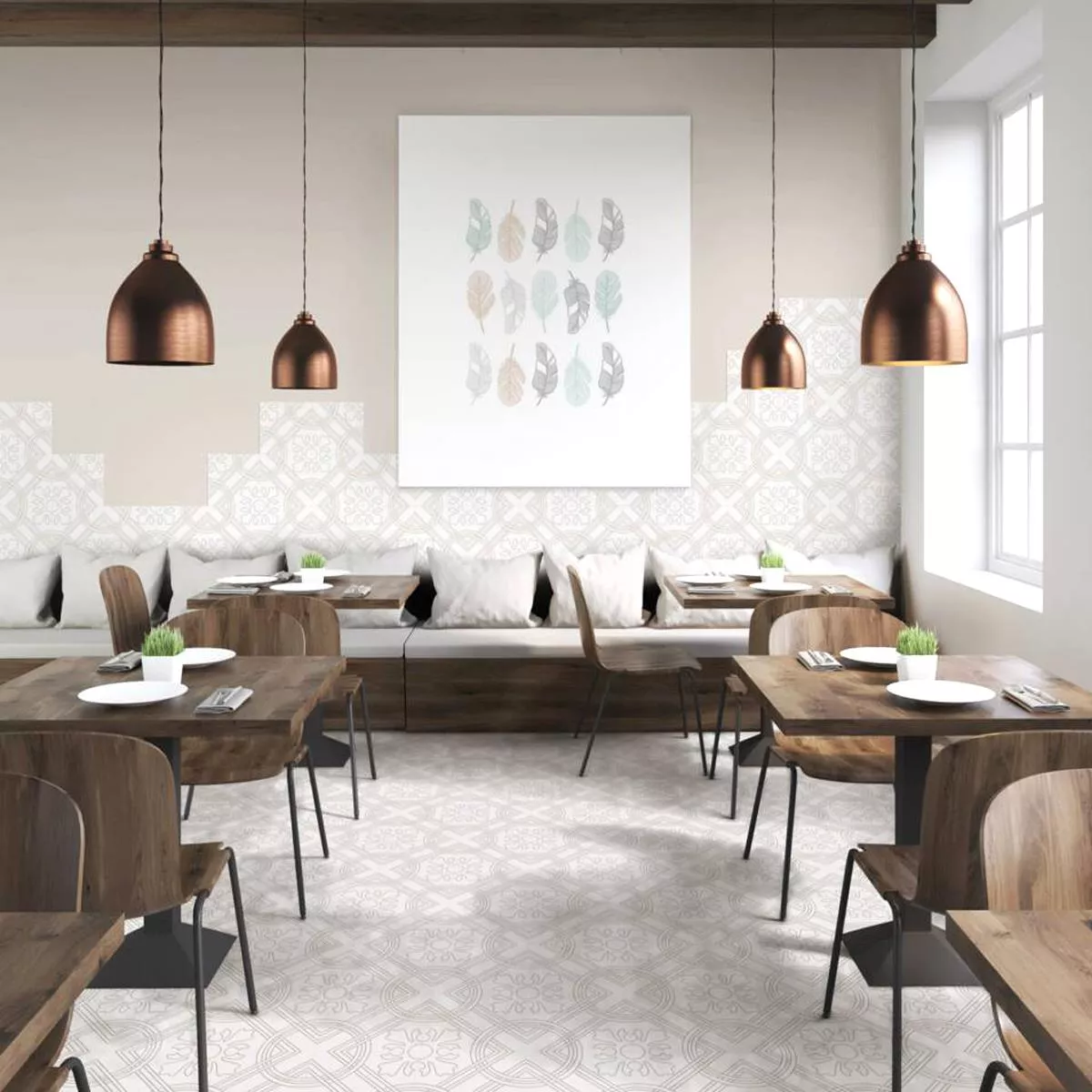 Estas baldosas son aptas tanto para interiores como para exteriores. Su resistencia a las heladas también las hace ideales para aplicaciones comerciales. Las baldosas de gres porcelánico Skyros aportan un diseño elegante y funcional a su espacio.
