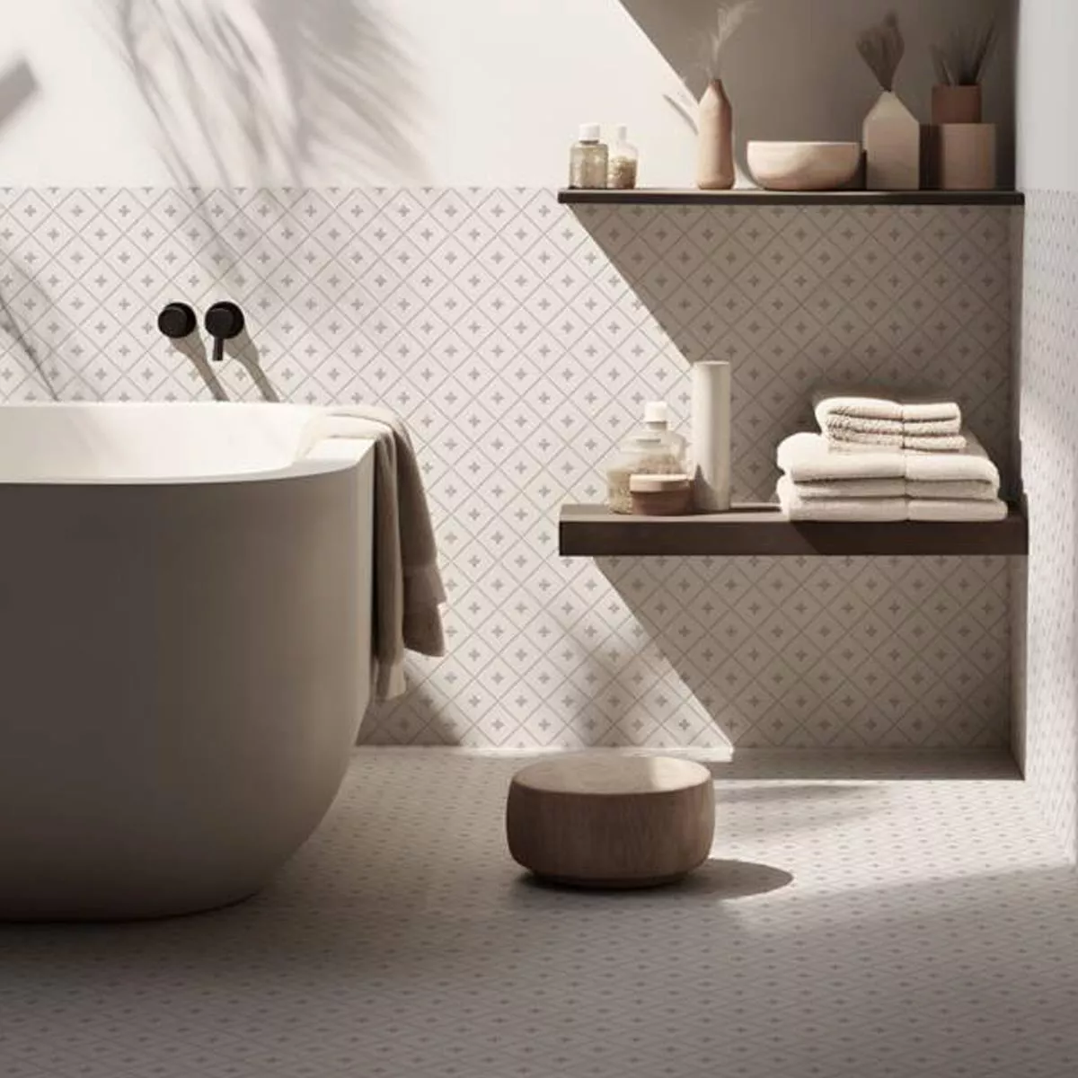 Los azulejos de gres porcelánico Skyros le permiten diseñar con estilo las paredes y el suelo de su ducha. Sus propiedades impermeables y antideslizantes los hacen ideales para duchas. Ya sea en el baño, el lavadero o el pasillo, los azulejos Skyros se integran a la perfección en cualquier estancia y complementan cualquier decoración.