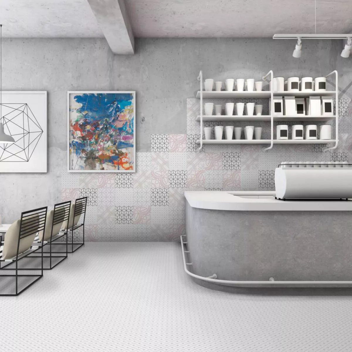 Descubra la impresionante paleta de grises y blancos de la colección Skyros de baldosas de gres porcelánico. Gracias a su estructura robusta y duradera, son ideales para diversos espacios, como cocinas, baños, salones e incluso áreas comerciales. Sus características especiales incluyen resistencia al deslizamiento, al agua y a las heladas, lo que las hace perfectas para invernaderos.