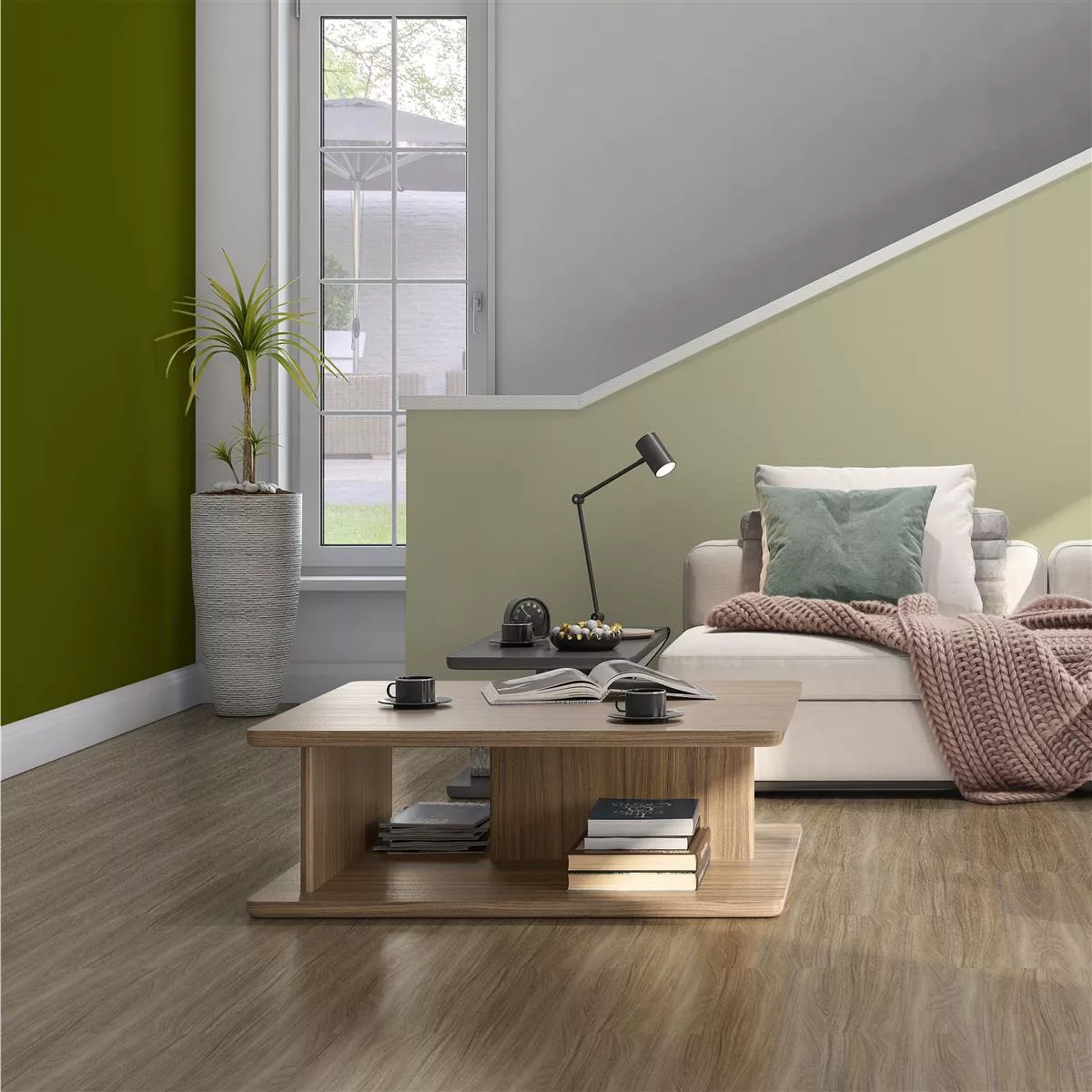 Nuestro suelo vinílico Tinadia con sistema de clic y aislamiento acústico de impacto integrado convence por su auténtica imitación de madera. El práctico sistema de clic permite un montaje rápido y sencillo. El suelo de vinilo es adecuado para todas las zonas habitables y además es resistente al agua.