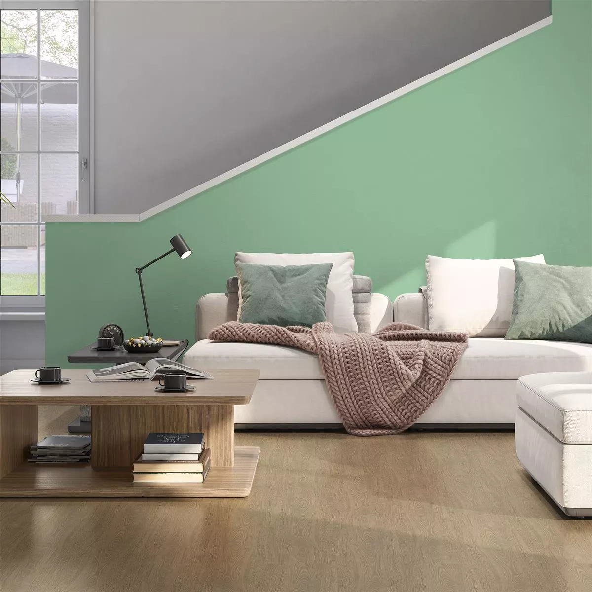 Nuestro suelo vinílico Vigonza con sistema de clic y aislamiento acústico de impacto integrado convence por su auténtica imitación de madera. El práctico sistema de clic permite una instalación rápida y sencilla. El suelo de vinilo es adecuado para todas las zonas habitables y además es resistente al agua.